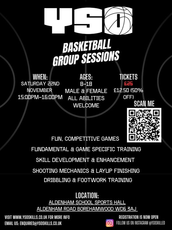 📅 Date: Saturday 22nd November 2025🕒 Time: 15:00PM – 16:00 PM📍 Venue: Aldenham School, Sports Hall, Aldenham Road, Borehamwood, WD6 3AJ🚗 Parking available on site💷 Price: £12.50 (50% OFF) USE PROMO CODE "YSOSKILLS" AT CHECKOUT TO UNLOCK *50% OFF!*